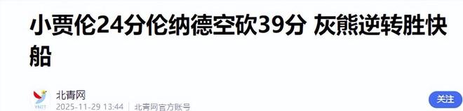 北青网(小贾伦24分伦纳德空砍39分 灰熊逆转胜快船2025.11.29)