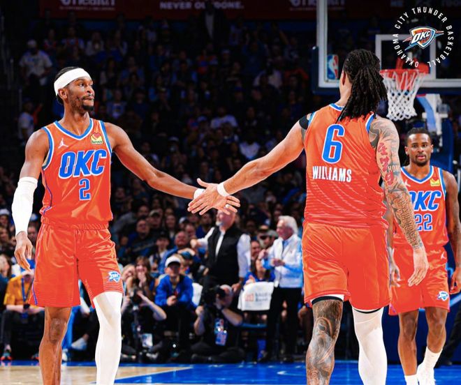 雷霆展现出了强大的实力,实力榜也是一直占据第一的位置,攻防两端的表现都很强势,场均失分108.3分是联盟最少的。而在球星成色上,亚历山大场均可以拿到32.8分6.4助攻,当杰伦·威廉姆斯无法出战的情况下,米切尔、乔和威金斯都能提供火力支持。霍姆格伦这边也变得更稳定,场均拿到19.6分8.9篮板,命中率接近六成。